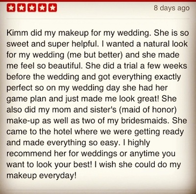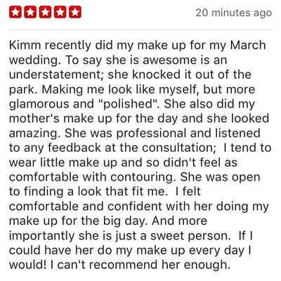 The AppointmentThe day has arrived! Please have a clean makeup-free face (and if I am doing your hair please have clean fully dry hair). I'll take care of it all from skincare to lashes and everything in between. For private clients payment is due at the time of service so come prepared with cash or Venmo ready.