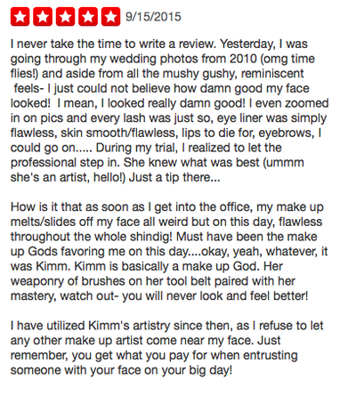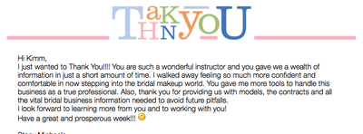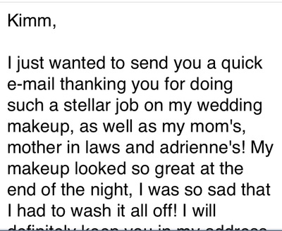 The ConfirmationNow that I know a bit about you and your makeup needs I'll be able to confirm my availability and get you on the calendar!